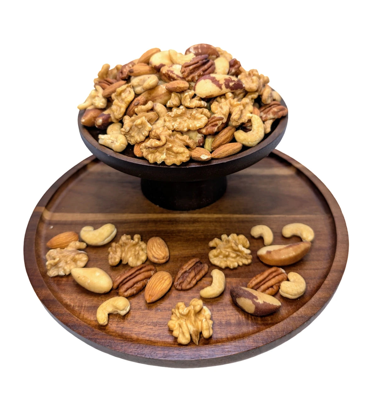 Eine Natur Edelnussmischung ist eine Mischung aus verschiedenen, naturbelassenen Nüssen, die in der Regel ohne Zusatzstoffe, wie Zucker oder Salz, angeboten wird. Sie besteht häufig aus einer Auswahl der folgenden Nüsse: