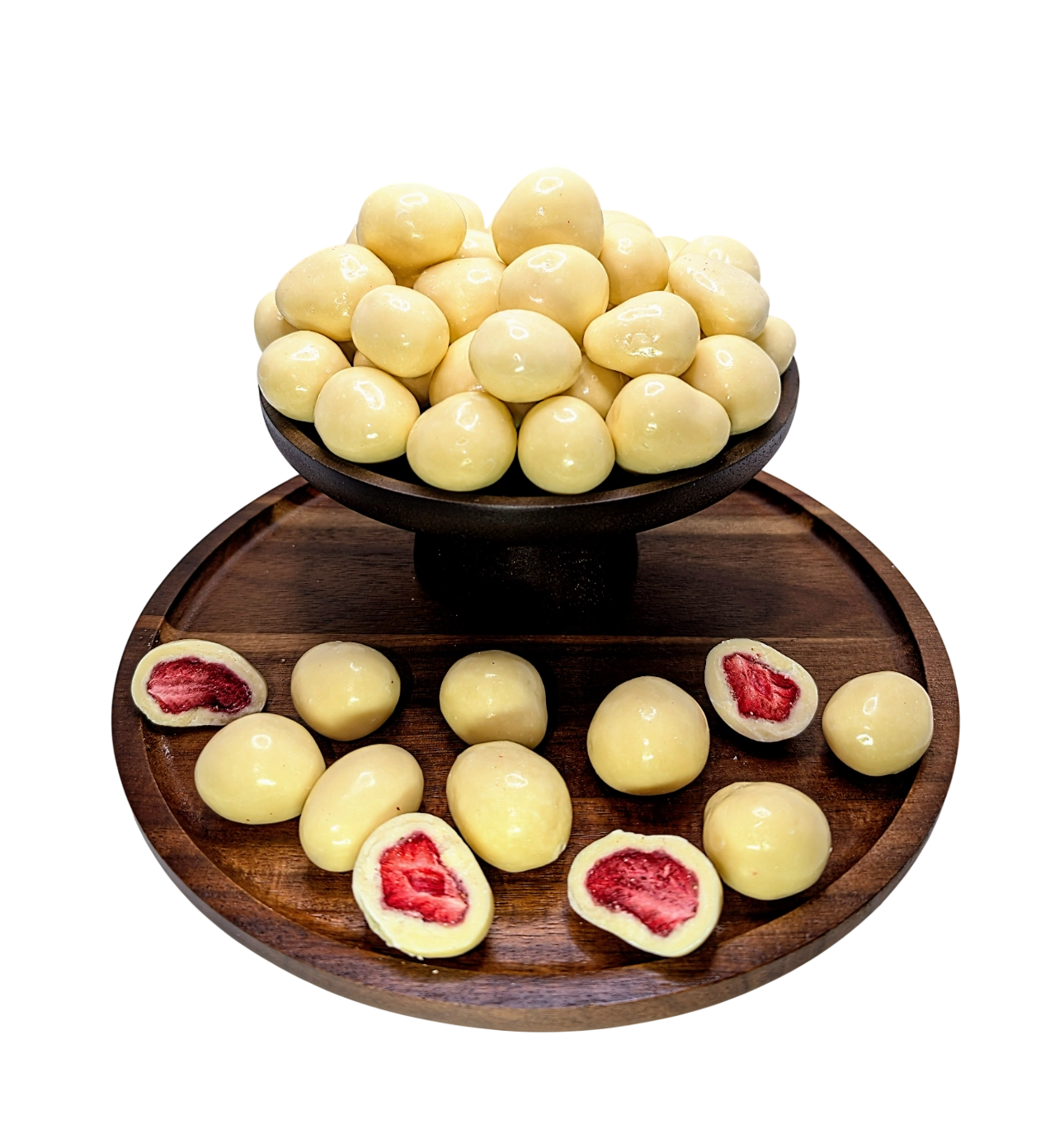 Erdbeeren gefriergetrocknet in weißer Schokolade
